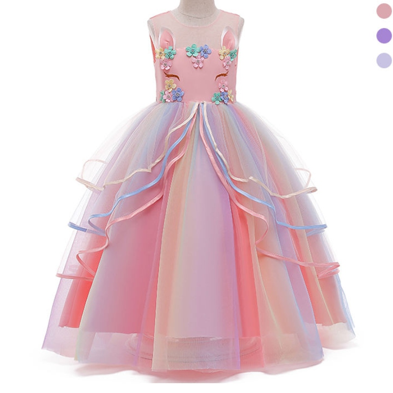 2022 สาวใหม่ชุดยูนิคอร์นหญิงสาว tutu เจ้าหญิงชุดวันเกิดปาร์ตี้คอสเพลย์