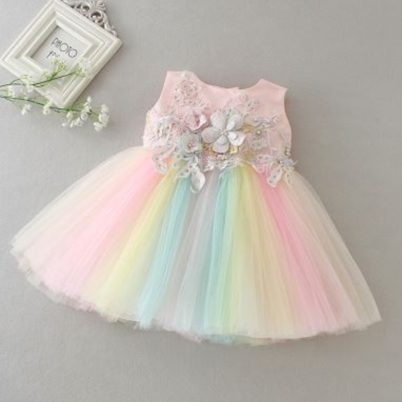 ฤดูร้อนเด็กวัยหัดเดินเด็กสาวชุดลูกลูกไม้ลูกบอลดอกไม้เด็กผู้หญิงสาว ๆ เค้กเค้กเค้กชุดแต่งกายปาร์ตี้